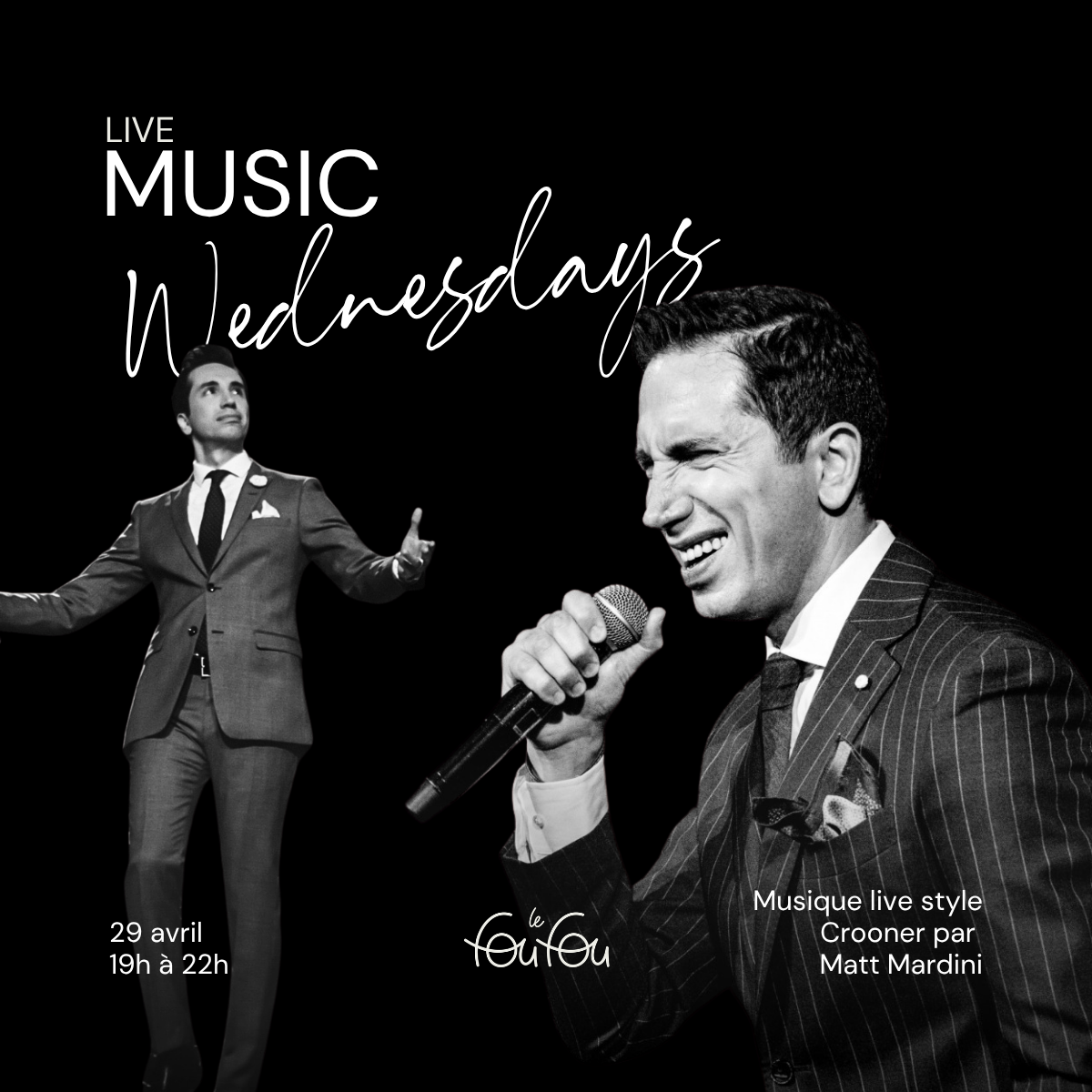 Pour lancer la série, Matt Mardini propose une soirée crooner aux sonorités classiques et élégantes, portée par des voix en direct et une énergie raffinée.
